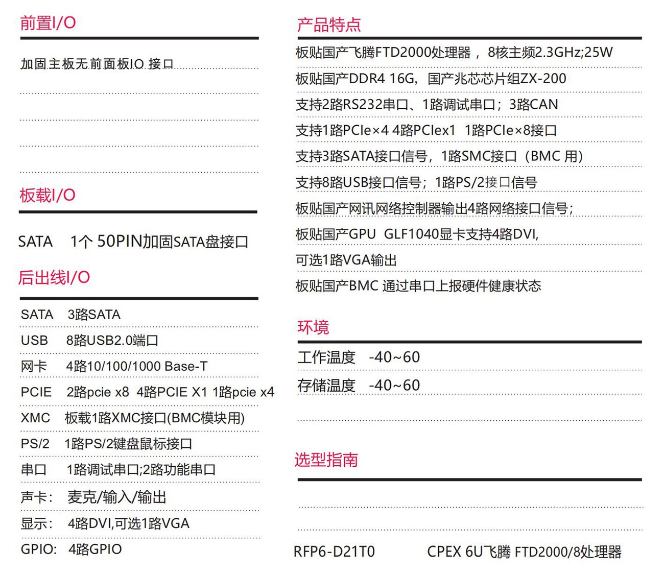 采用國產飛騰處理器+ZX-200芯片組國產化設計, 6U CPEX規格。具備豐富的外圍接口;設計了高效的散熱系統,可顯著提高處理器的浮點運算性能,以太網、PCIe、支持高帶寬數據傳輸,滿足視頻采集與處理、雷達和聲吶等應用對高速數據傳輸的要求。滿足無人機、裝甲車、水面艦艇等軍工領域。