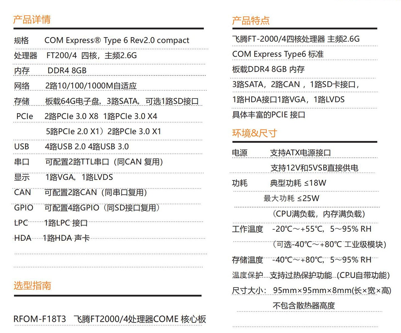 采用FT-2000/4高性能處理器設(shè)計(jì) 符合COM Express Type6 rev2.0 接口規(guī)范設(shè)計(jì),板載DDR4 8GB 內(nèi)存, 64G工業(yè)固態(tài)電子盤(pán),支持VGA和LVDS雙屏顯示輸出, 是一款國(guó)產(chǎn)自主可控集高性能,低功耗,高可靠性于一體的高集成度COME 核心板,可廣泛應(yīng)用于能源,軌交,國(guó)防,科研,通訊等領(lǐng)域。