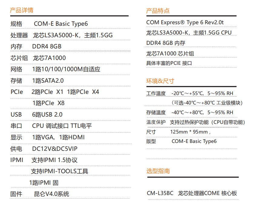 核心板采用龍芯3A5000CPU搭配龍芯7A1000橋設計COM- E Basic Type6版 型,板載 DDR4 8GB內存支持VGA,HDMI雙屏顯示輸出,是一款 國產自主可控集高性能,低功耗,高可靠性于一體的高集成度COME核心板,可廣泛應用于能源等領域。